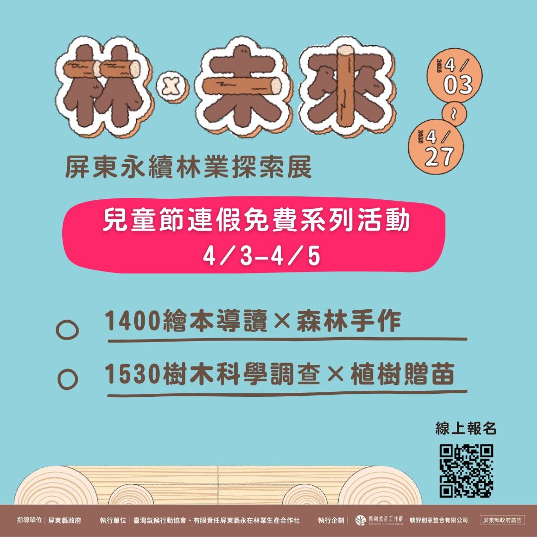 屏東縣政府於【屏東農業物產館】推出《林×未來—屏東永續林業探索展》,展期結合【親子共學】、【週末手作】與【專題講座】三大主題,誠摯邀請您一起在春日午後親近森林、探索碳匯、體驗手作、共學永續!